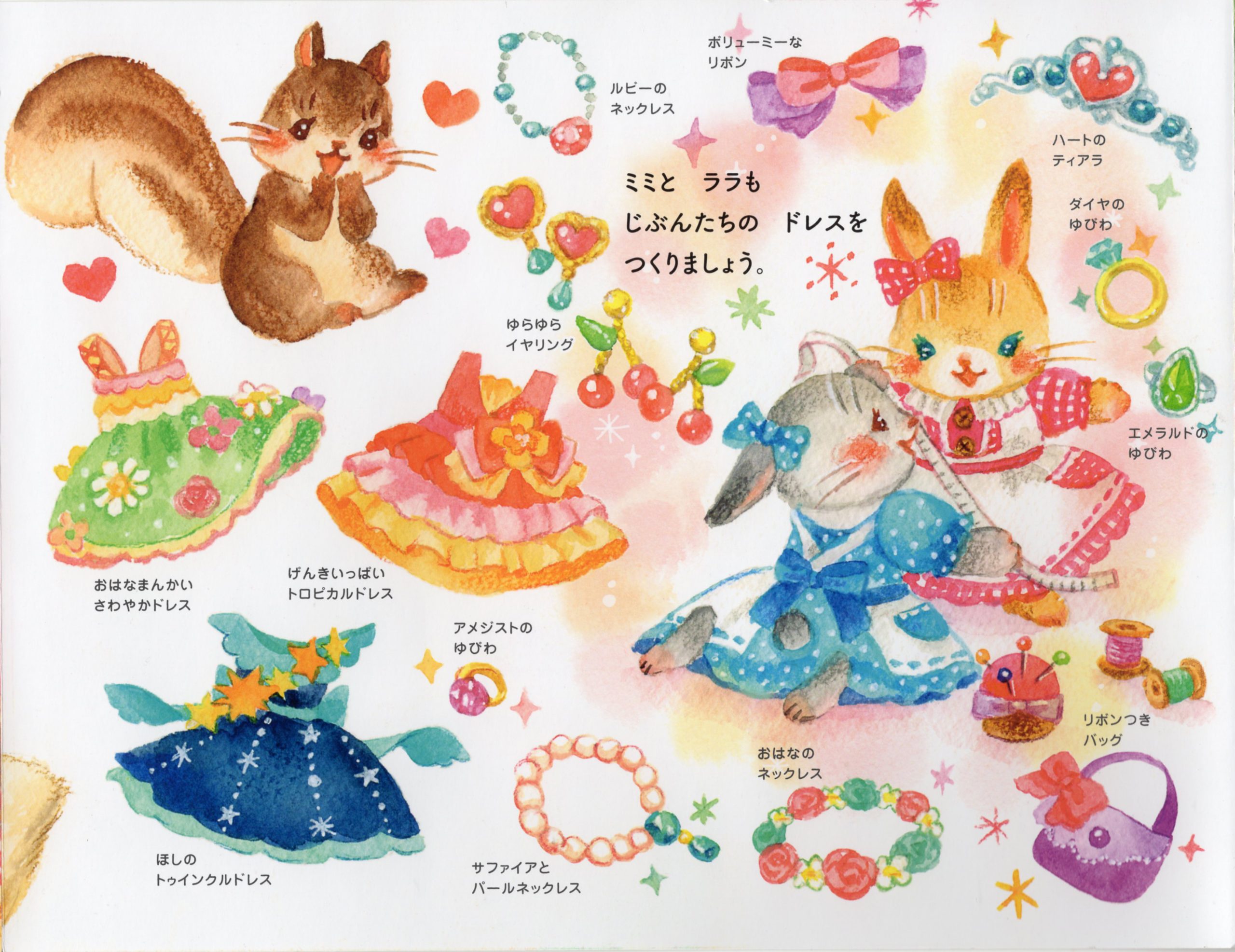 児童書イラスト, 出版本, 絵本 ミミとララのおしゃれパーティー 小林さゆり2026年1月30日2026年1月30日 しかけつきのかわいい絵本です。見開きが沢山あり、広がりのある絵の中で子供達に自分の好きなものや何か面白いものを見つけて楽しんでいただけます。私にとって、初の一冊まるごと描かせていただいた絵本です。